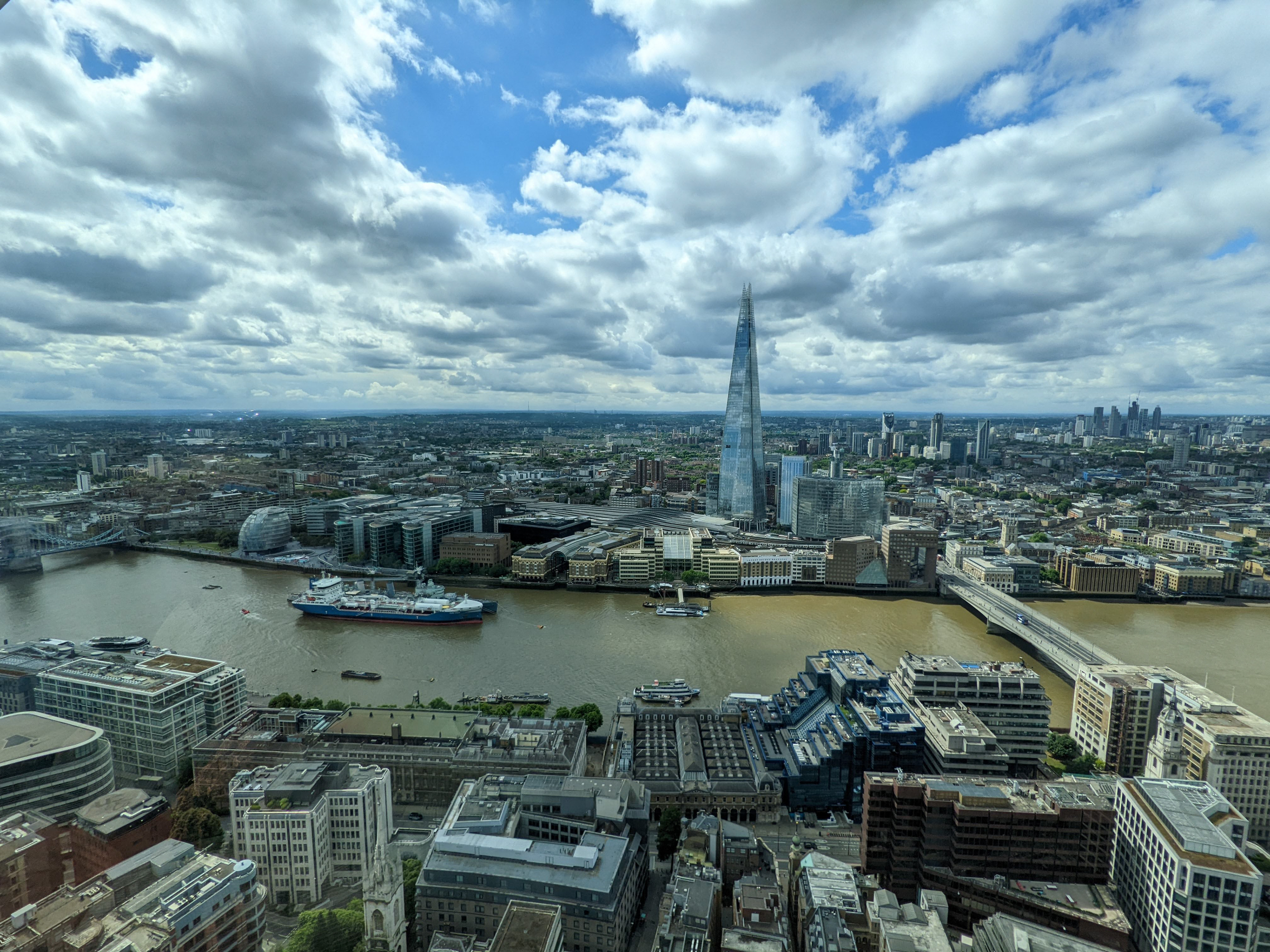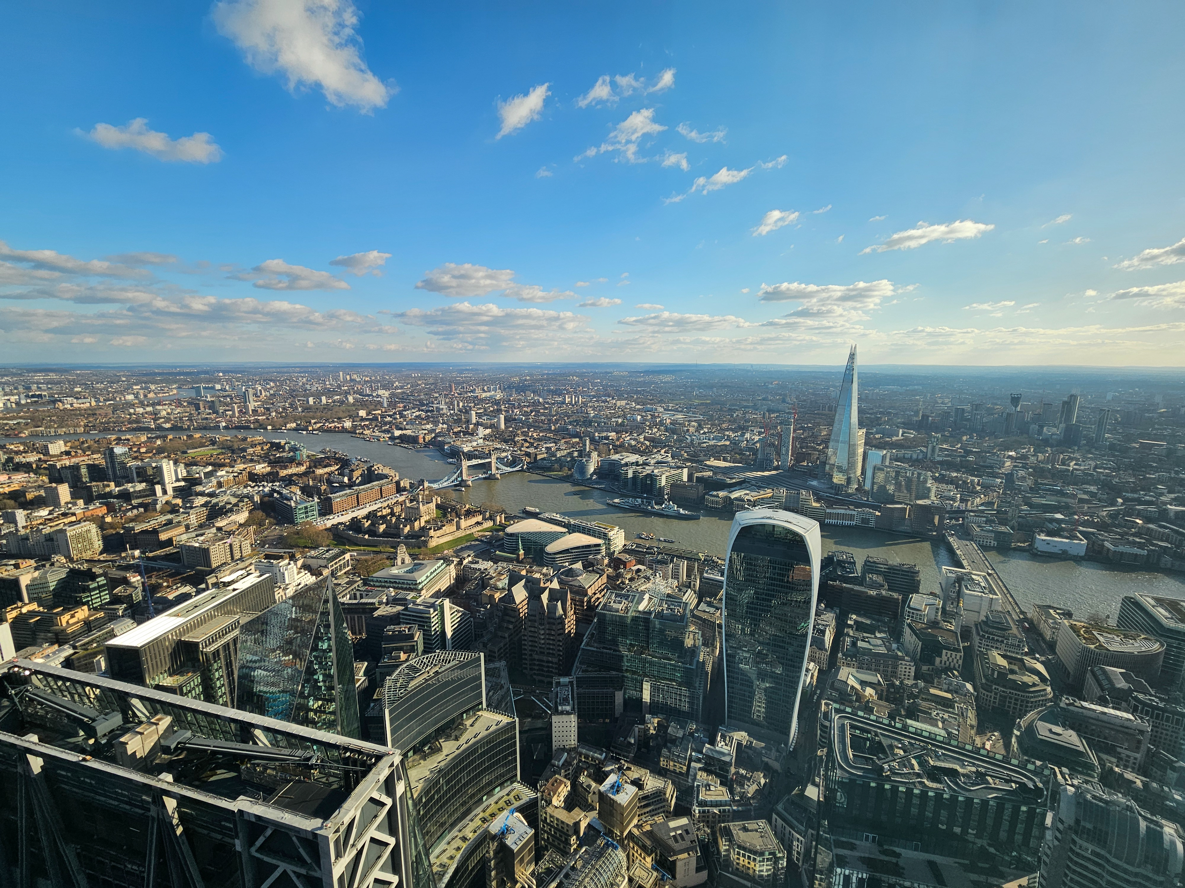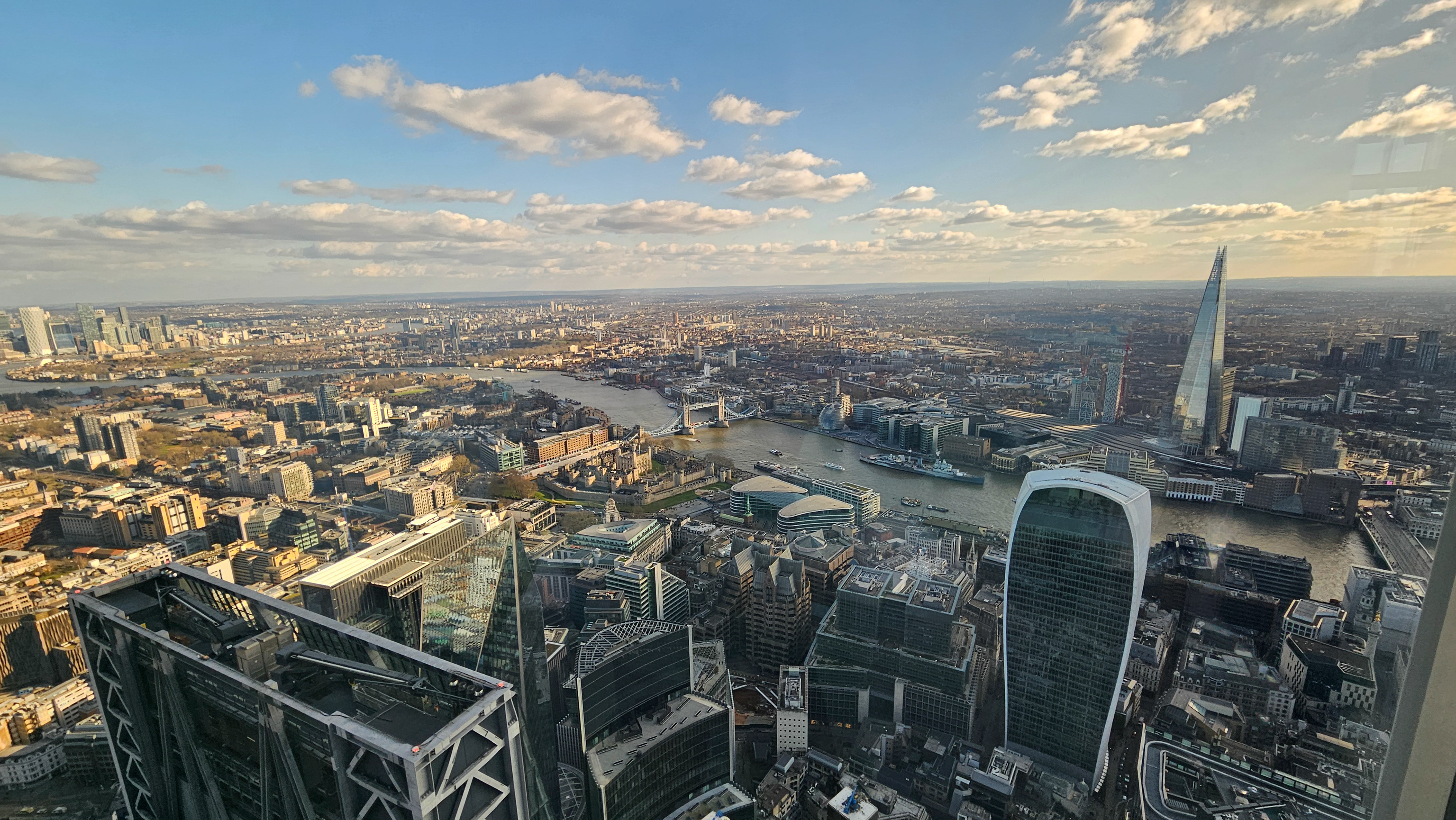 Surpreendentemente, o observatório mais alto da cidade é também o mais descomplicado de se visitar, com disponibilidade de ingressos para o dia sem dor de cabeça. Depois da segurança, o trajeto de elevador até o 58º andar dura segundos, com direito a sensação desconfortável no ouvido, seguido da surpreendente vista a mais de 250 metros de altura – Londres vira uma maquete dali de cima.