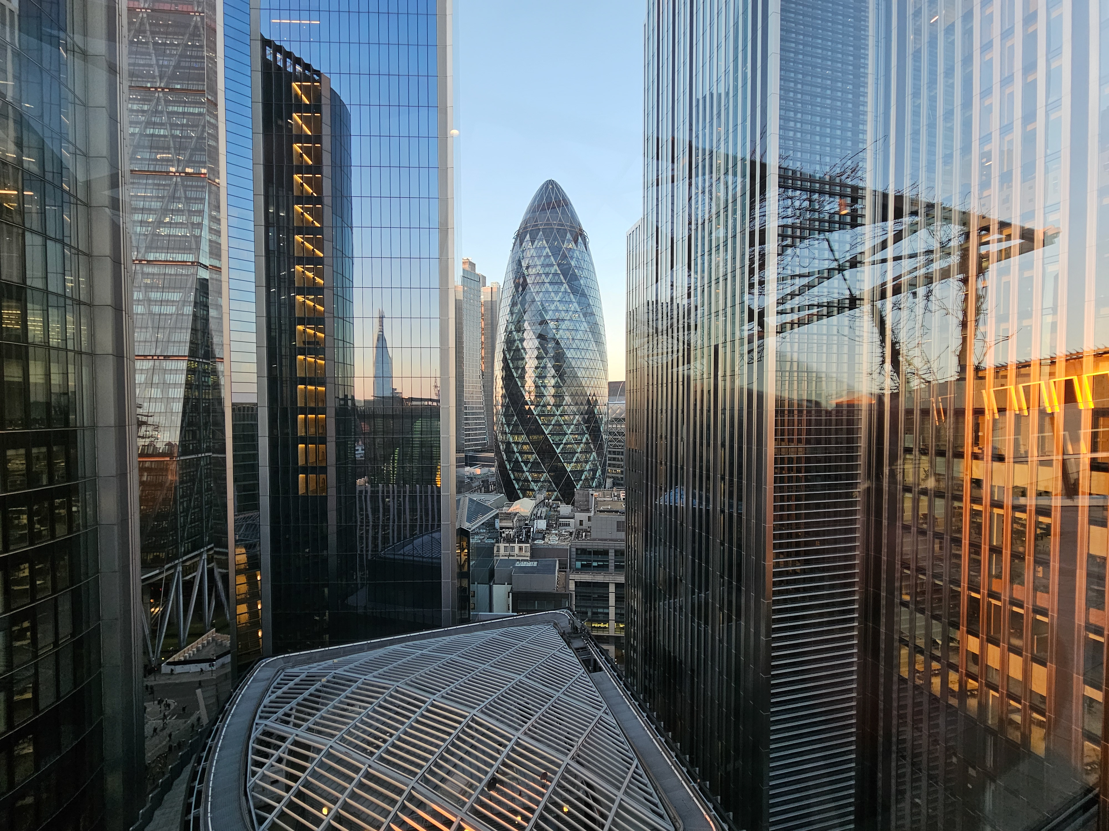 Não se vê arranha-céus em boa parte da cidade, muito por conta da lei que protege vistas a edifícios históricos. Os prédios altos chamam mais atenção pelos seus formatos inusitados do que pela altura – como é o caso do Walkie Talkie, lar do Sky Garden, da pirâmide espelhada do Shard, ou o Gherkin, que lembra um pepino (ou um brinquedo adulto).